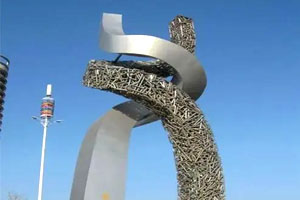 可采用镜面、拉丝、喷漆等工艺制作仿真、卡通、彩绘、编织网格、几何块面等各种异型不锈钢雕塑。